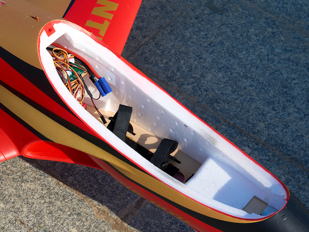 The 90mm Avanti is impressively large and remarkably easy to fly. The spacious battery compartment is a notable feature.