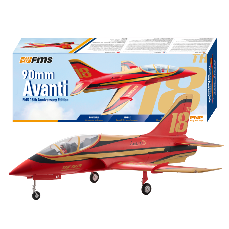 The 90mm Avanti 18th Anniversary Edition is FMS's fastest sport jet, designed for high-speed aerobatic performance, combining precision, power, and a stunning design to deliver an exceptional flying experience.